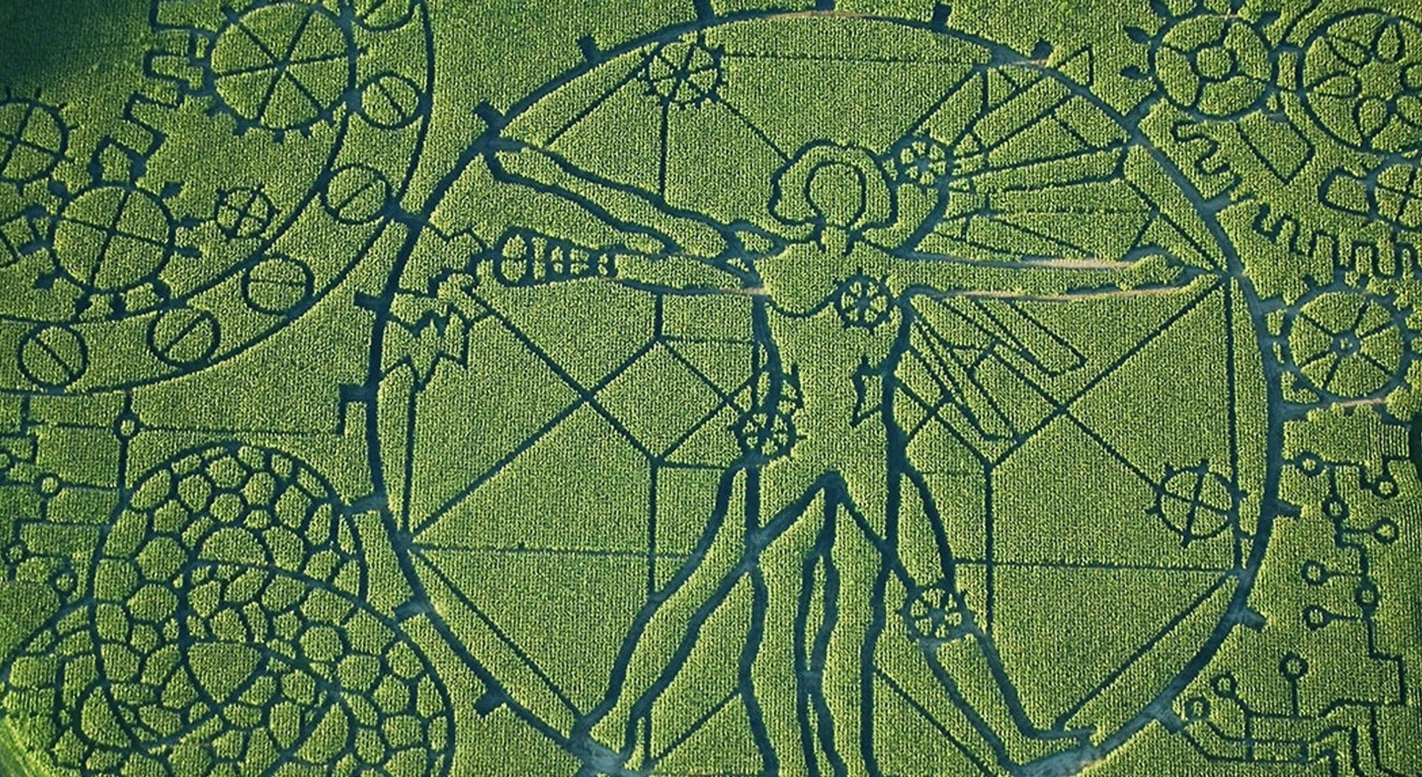 Révolution extérieure (le cercle – l’univers – macrocosme) et révolution intérieure (l’esprit – l’homme – microcosme). L’Homme de Vitruve, épousant la forme de l’étoile et inscrit dans un cercle, symbolise cette harmonie entre le macrocosme et le microcosme.