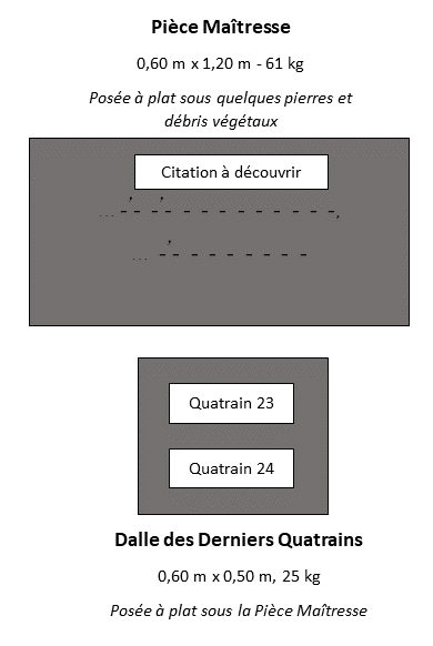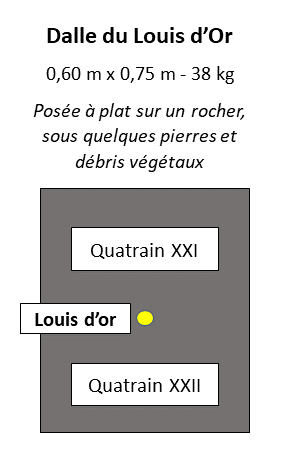 Comme pour la Dalle du Louis, ces deux quatrains seront rendus publiques dès la découverte de la Pièce Maîtresse.